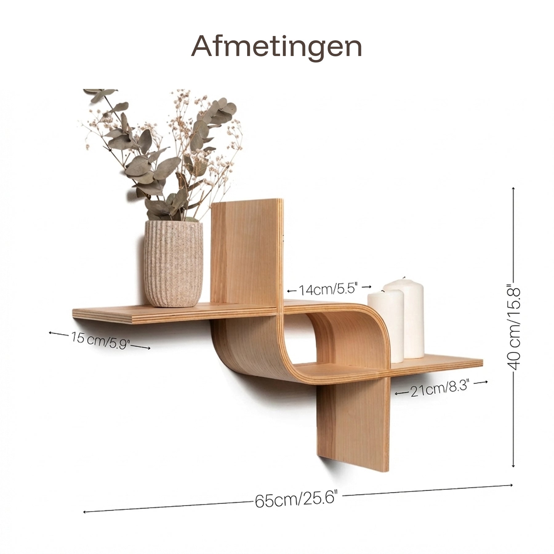 Zie de Onda niet als opbergplank, maar als een podium voor je mooiste items. Het speelse hoogteverschil is perfect om een hangplant of dierbaar souvenir in de spotlight te zetten zonder dat het rommelig oogt.